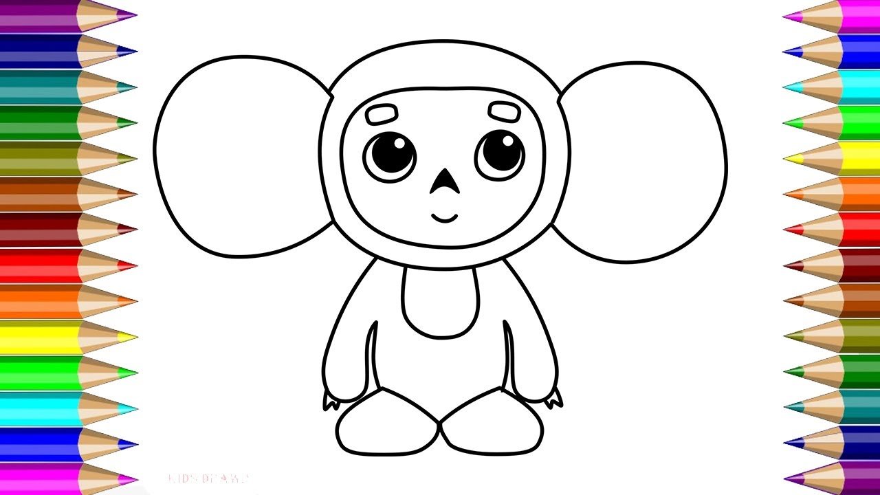 ![Чебурашка и крокодил Гена раскраски для детей]()