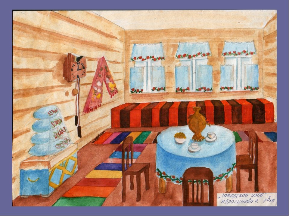 Интерьер избы рисунок