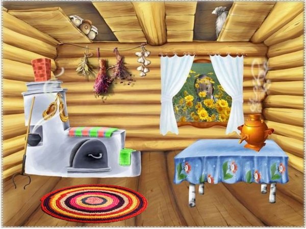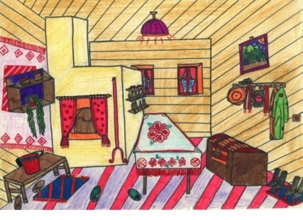 ![Интерьер избы рисунок]()