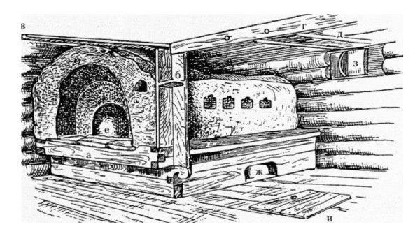 ![Печь в крестьянской избе древней Руси]()