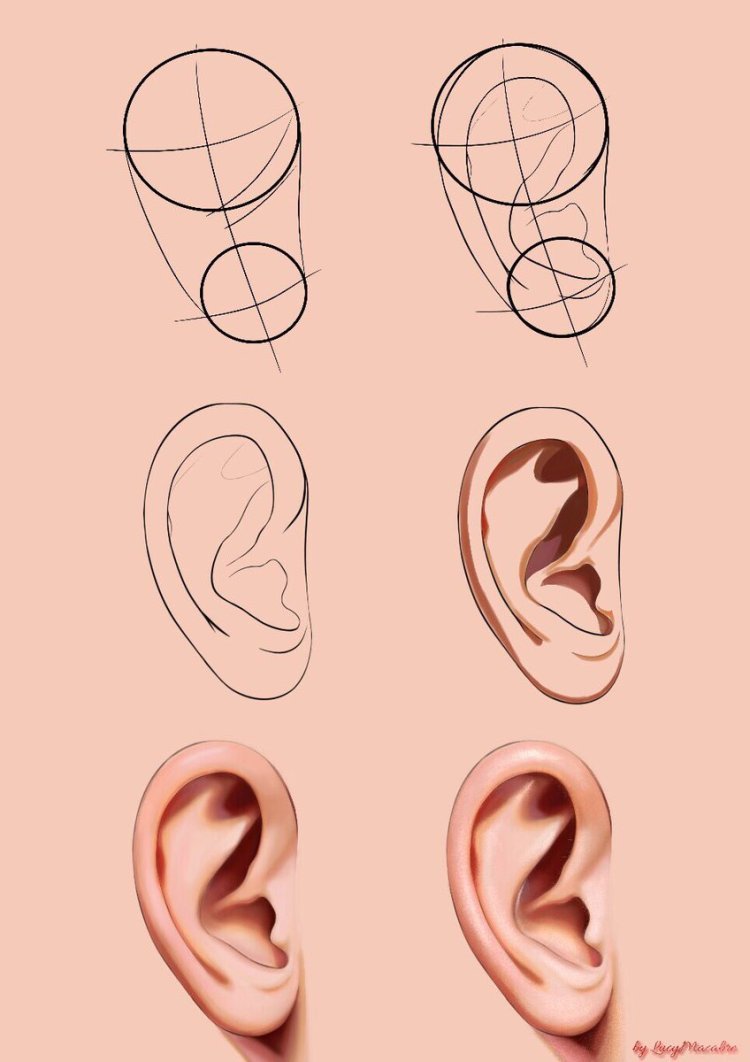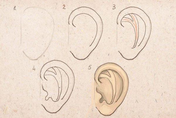 Как нарисовать ухо поэтапно