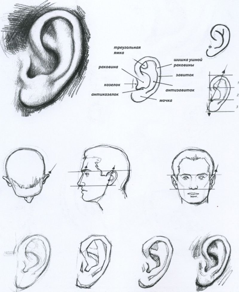 ![Зарисовки уха]()