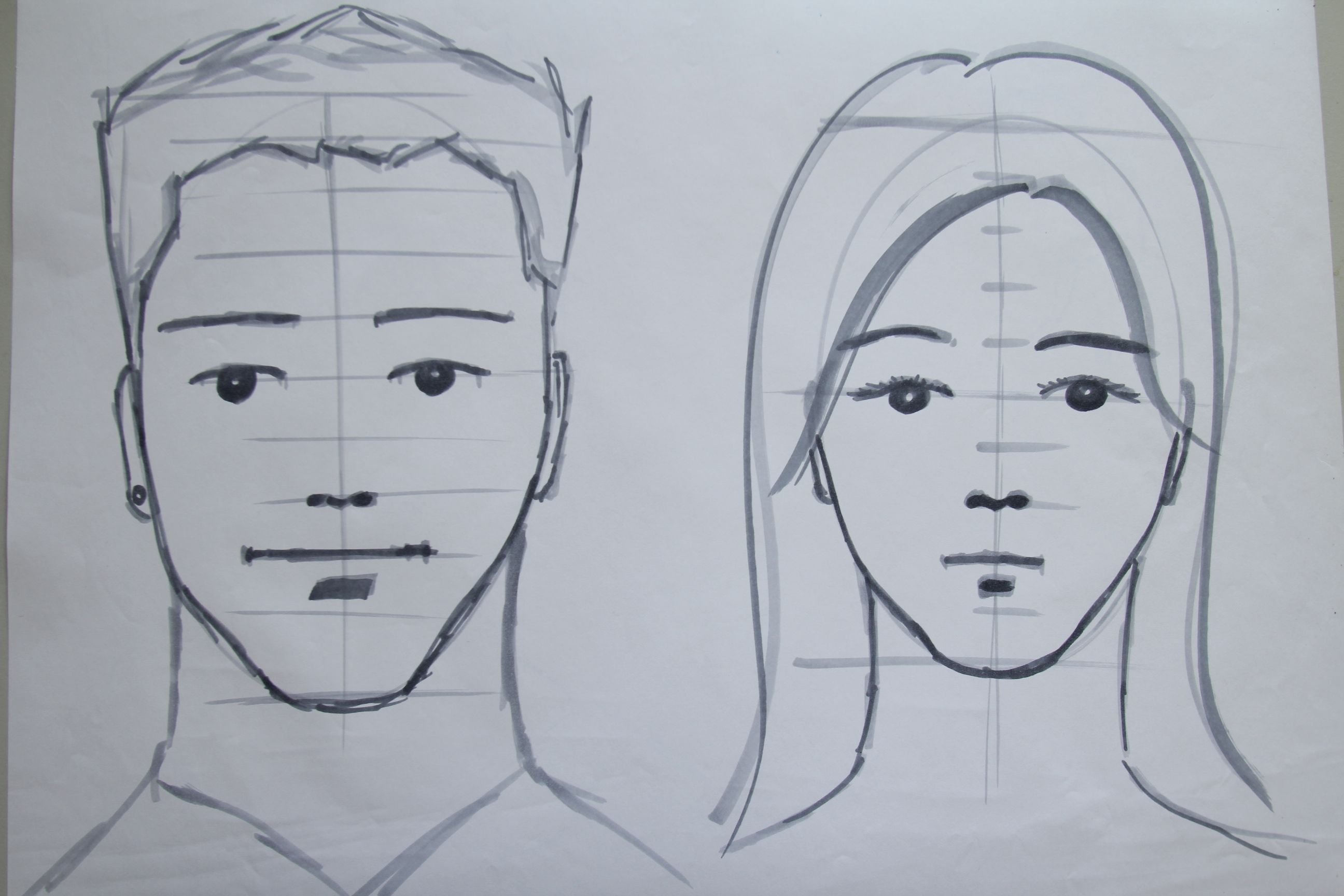 ![Этапы рисования лица]()