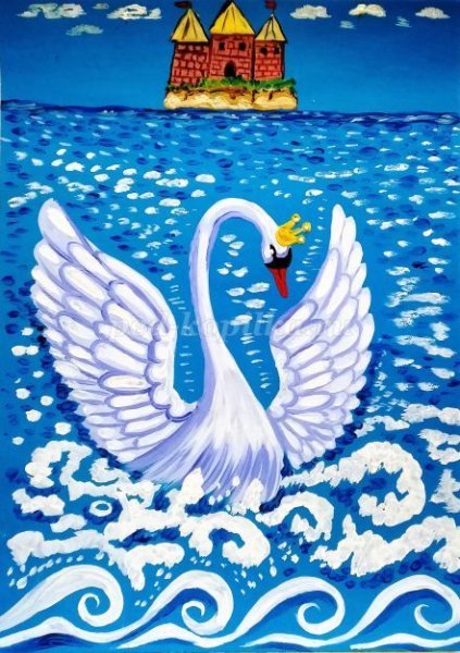 ![Рисунок царевны лебедь из сказки о царе Салтане]()