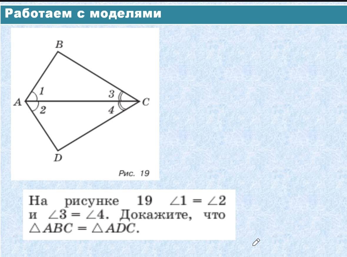 Дано 1=2 3=4 доказать ABC=ADC