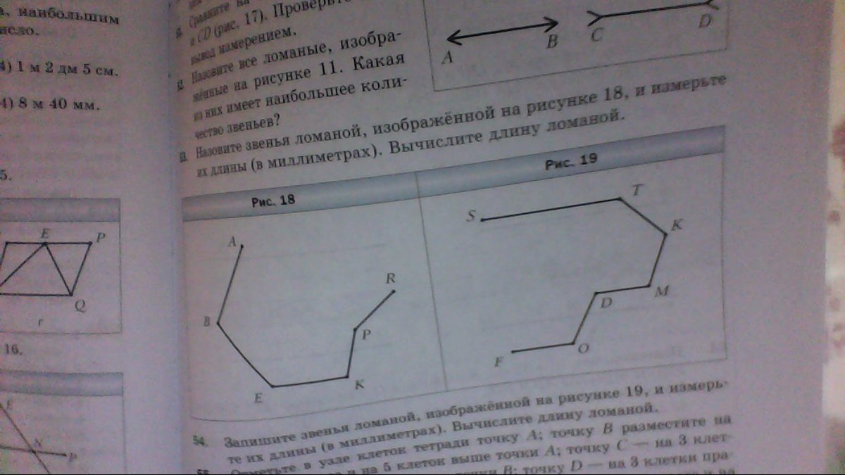 Запиши звенья ломаной изображённой на рисунке 19 и измерьте