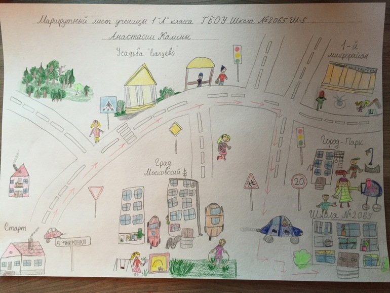 ![Дом-школа-дом безопасный маршрут рисунок]()