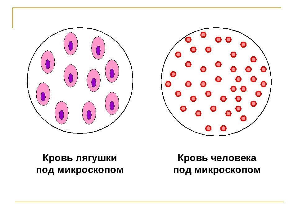 ![Форма клеток крови человека и лягушки]()