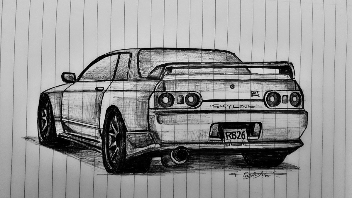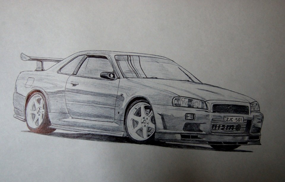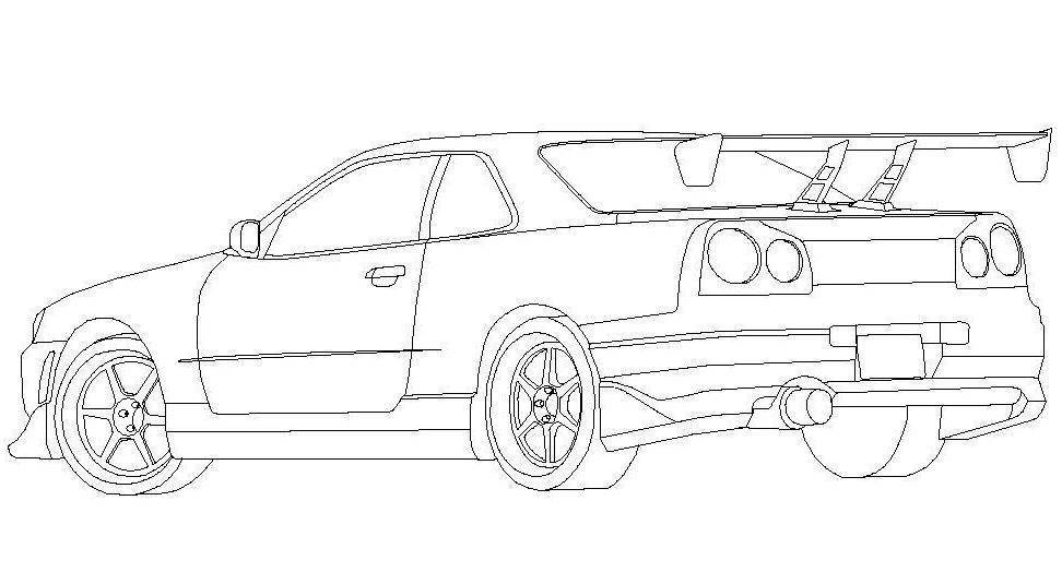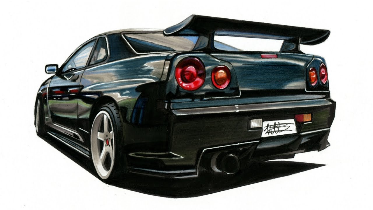 ![Ниссан Скайлайн 34 рисунок сзади]()