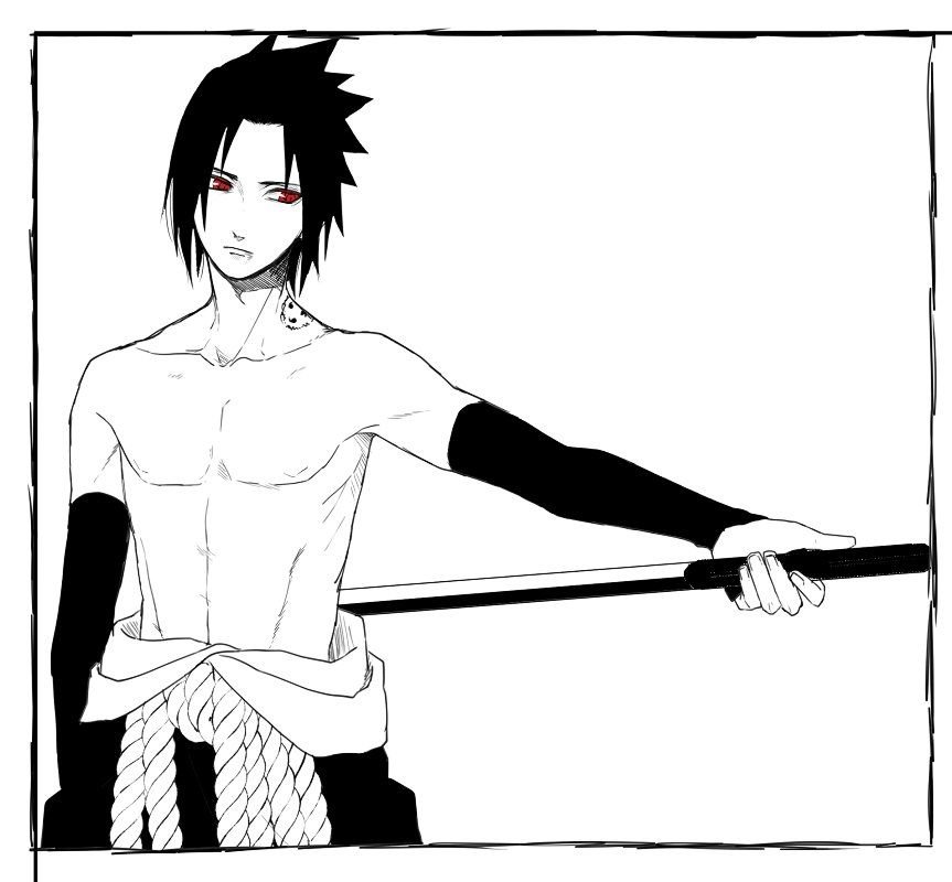 ![Саске Учиха черно белый]()