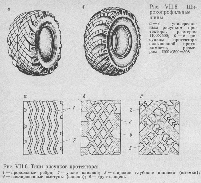 ![Схематическая зарисовка протектора шин]()
