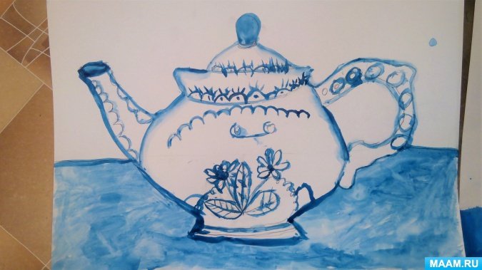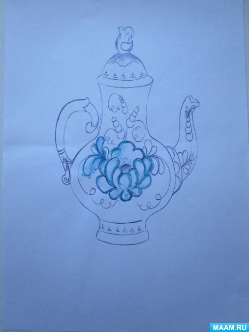 ![Кувшин Гжельская роспись в подготовительной группе]()