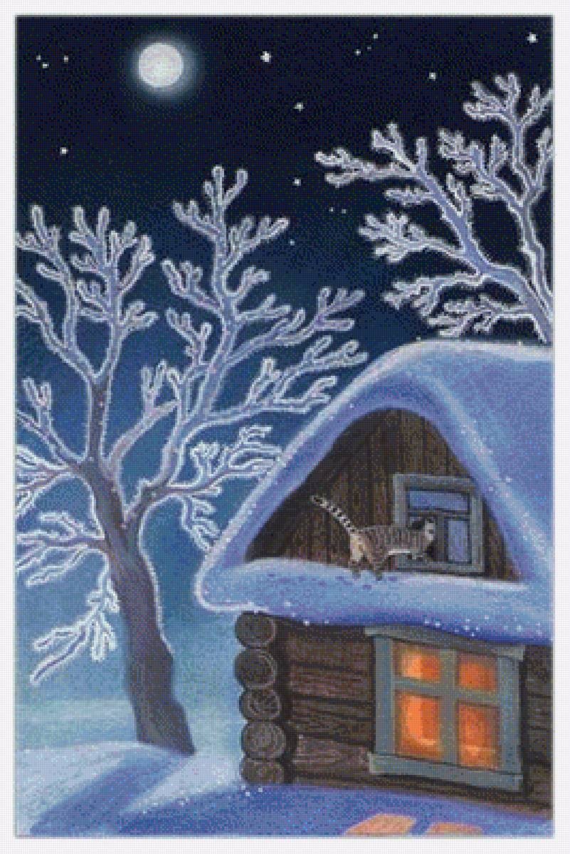 ![Зимний пейзаж с домиком]()