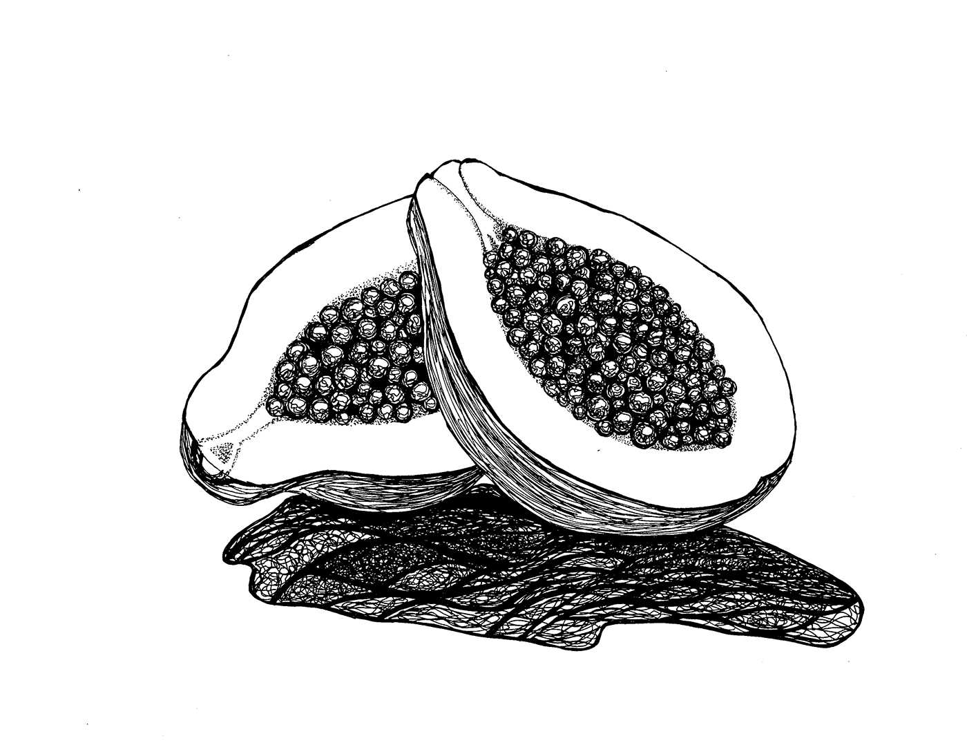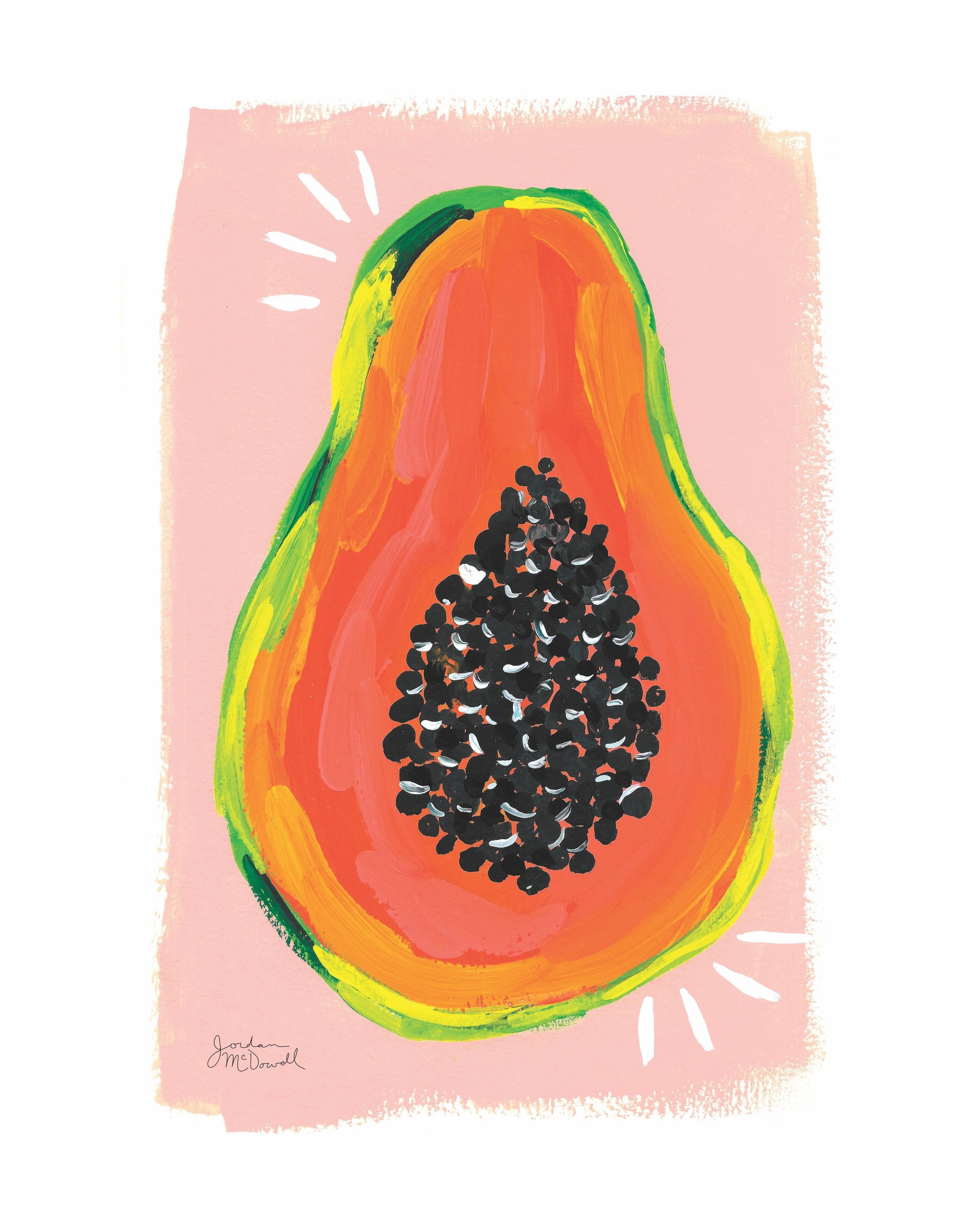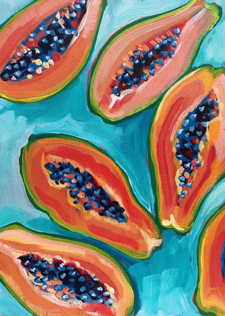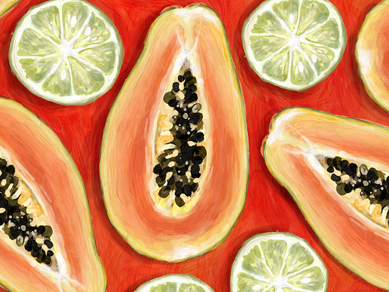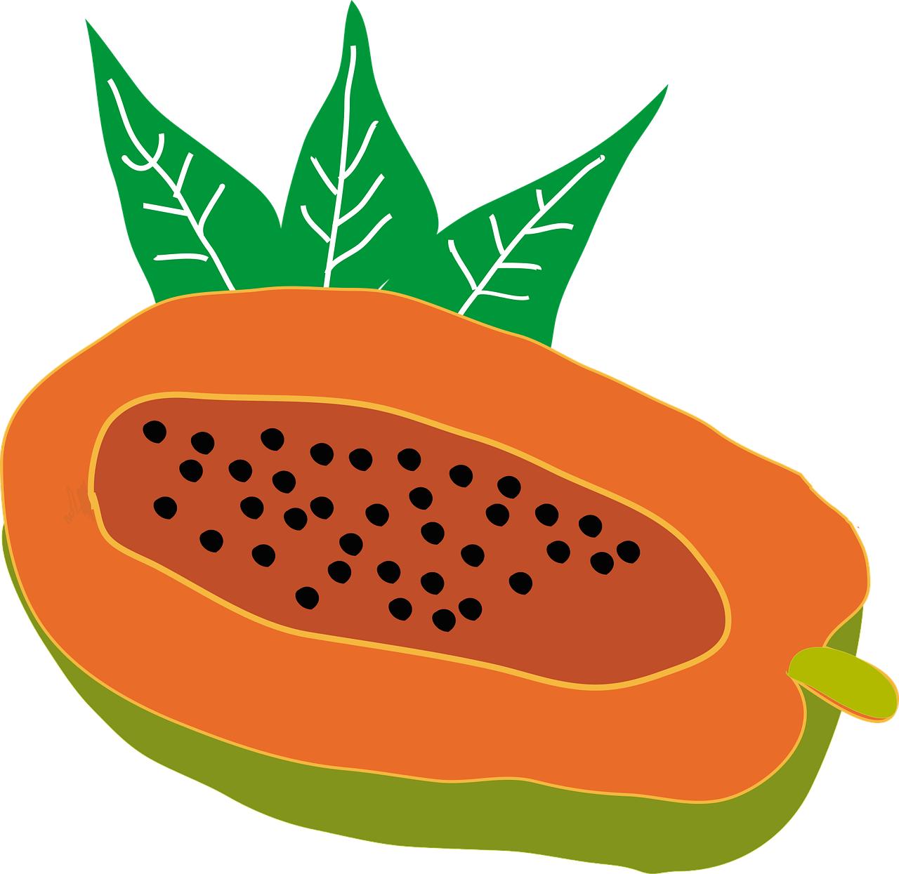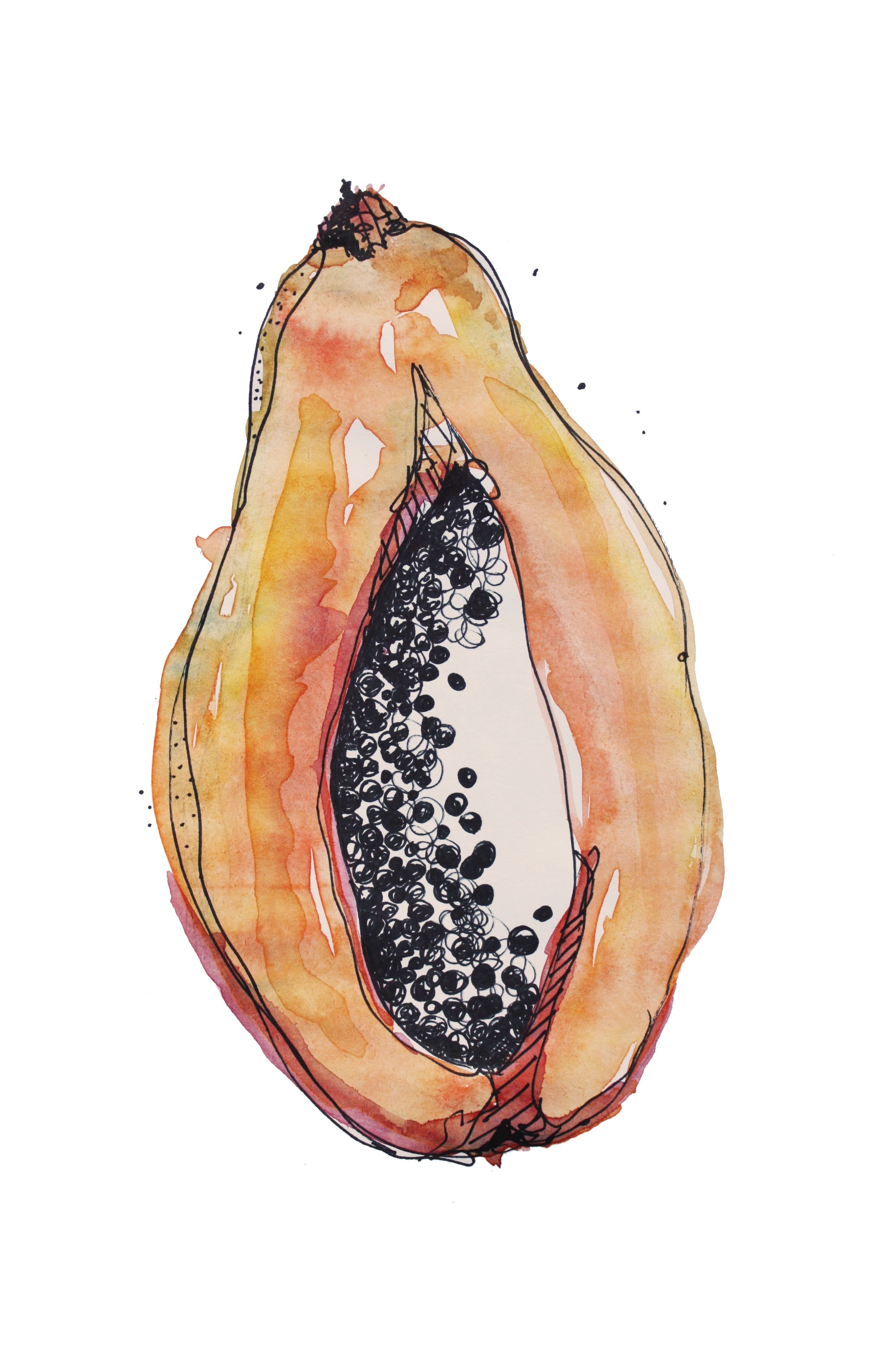![Экзотические фрукты нарисованное акварелью папайя]()