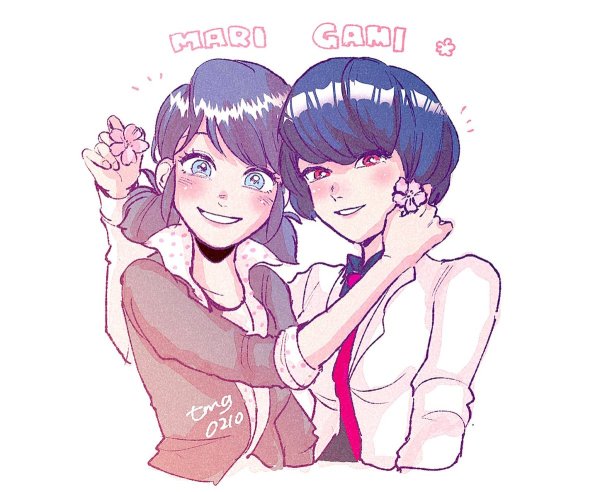 ![Маринетт Дюпен Чен арт с распущенными волосами]()
