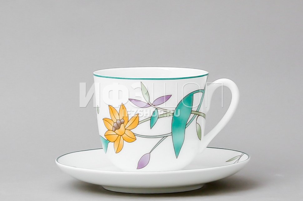![Чайная чашка с блюдцем «в сторону Востока» на форме «Весенняя».]()