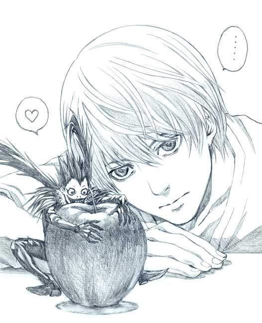 ![Ягами Лайт и рюк карандашом]()