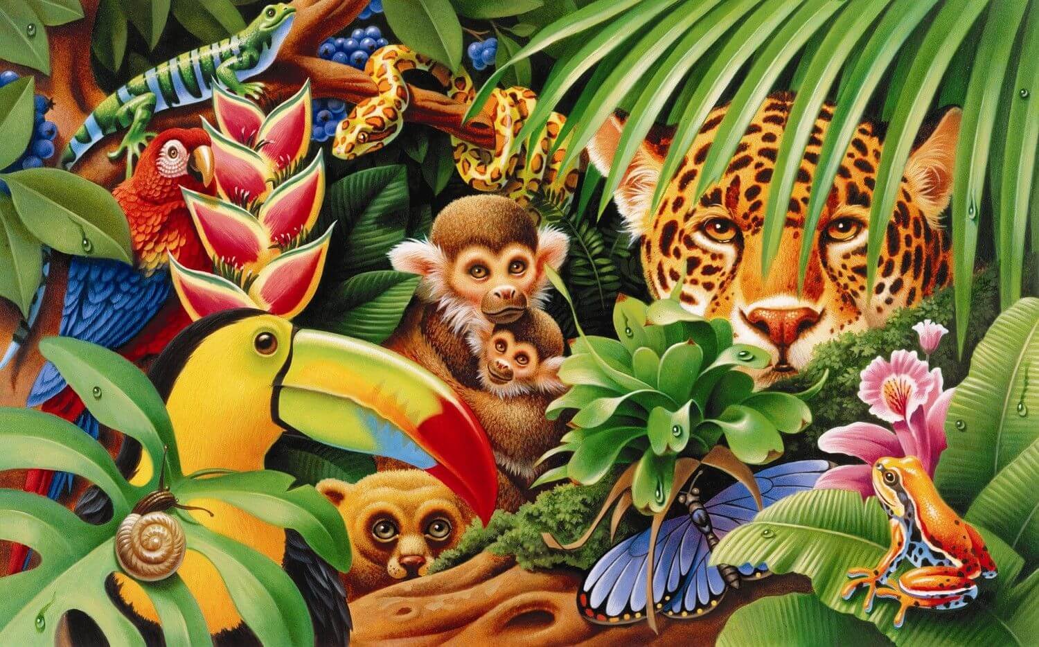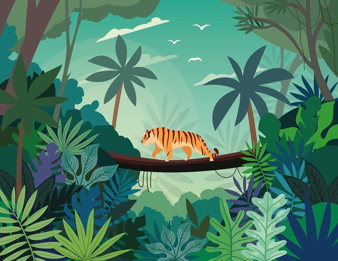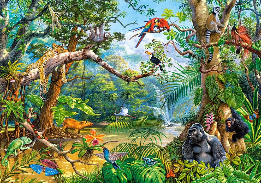 Погрузитесь в волшебный мир дикой природы с нашим рисунком "Джунгли". Яркие и сочные цвета переносят нас в густой лес, где каждый листок и каждая ветка оживает. Здесь можно увидеть разнообразных животных, скрытых среди зелени - обезьян, попугаев, тигров и многих других. Великолепная детализация и реалистический стиль делают этот рисунок неповторимым и привлекательным. Позвольте себе окунуться в мир приключений и загадочности с нашим рисунком "Джунгли"!