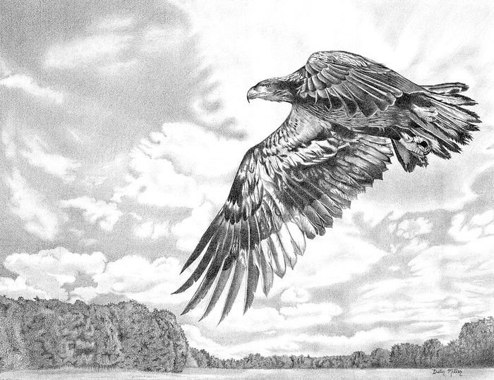 Орел в полете карандашом