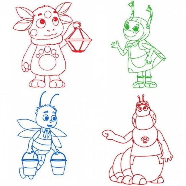 Персонажи мультфильма Лунтик раскраски