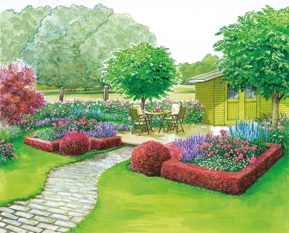 ![Нарисовать ландшафт сада]()