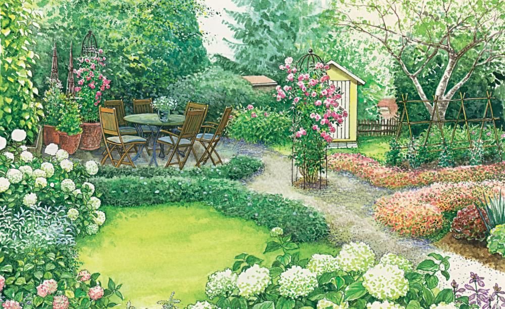 ![Живописный набросок сада]()