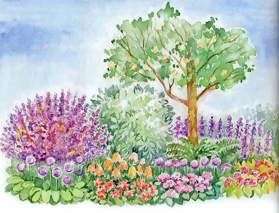 Ботанический сад акварелью