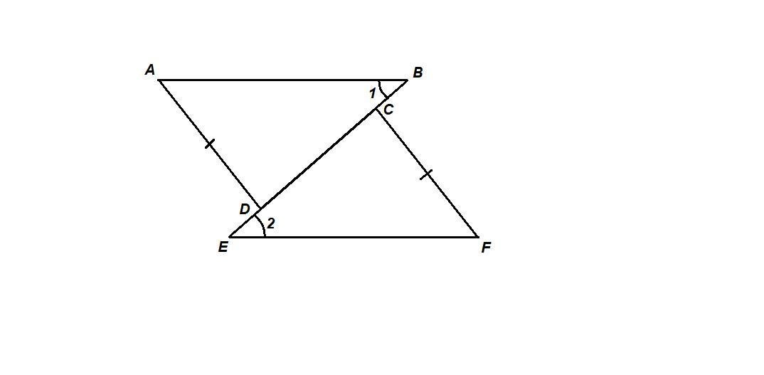 Угол 1 равен углу 2 ab параллельна de