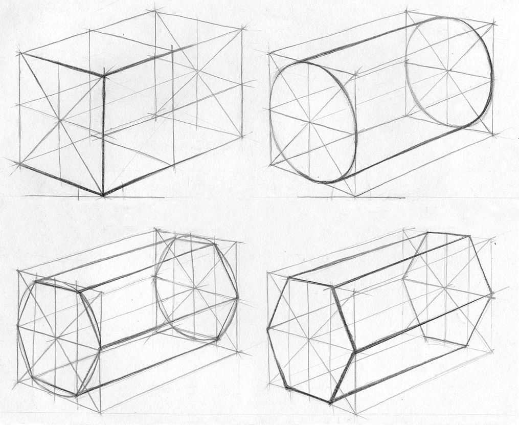 ![Рисование геометрических тел (Призма, пирамида, куб).]()
