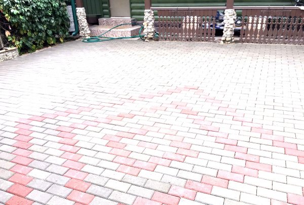 ![Схемы укладки брусчатки кирпичик двух цветов]()