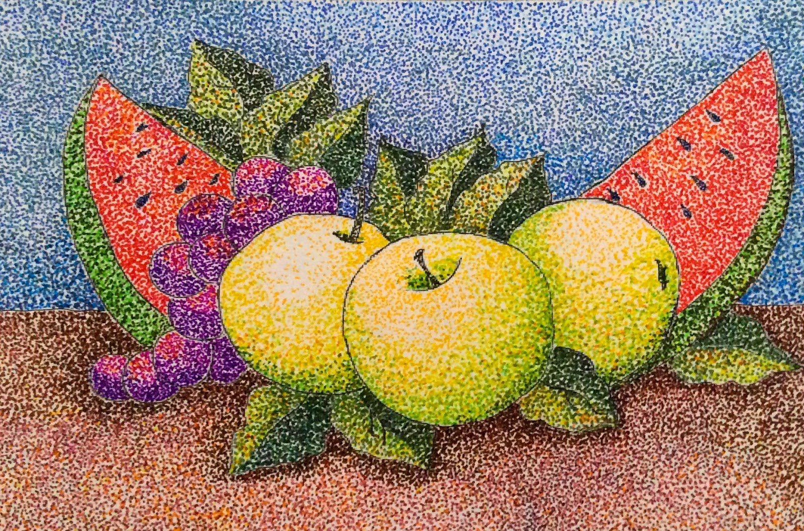 ![Пуантилизм (дивизионизм) фрукты]()