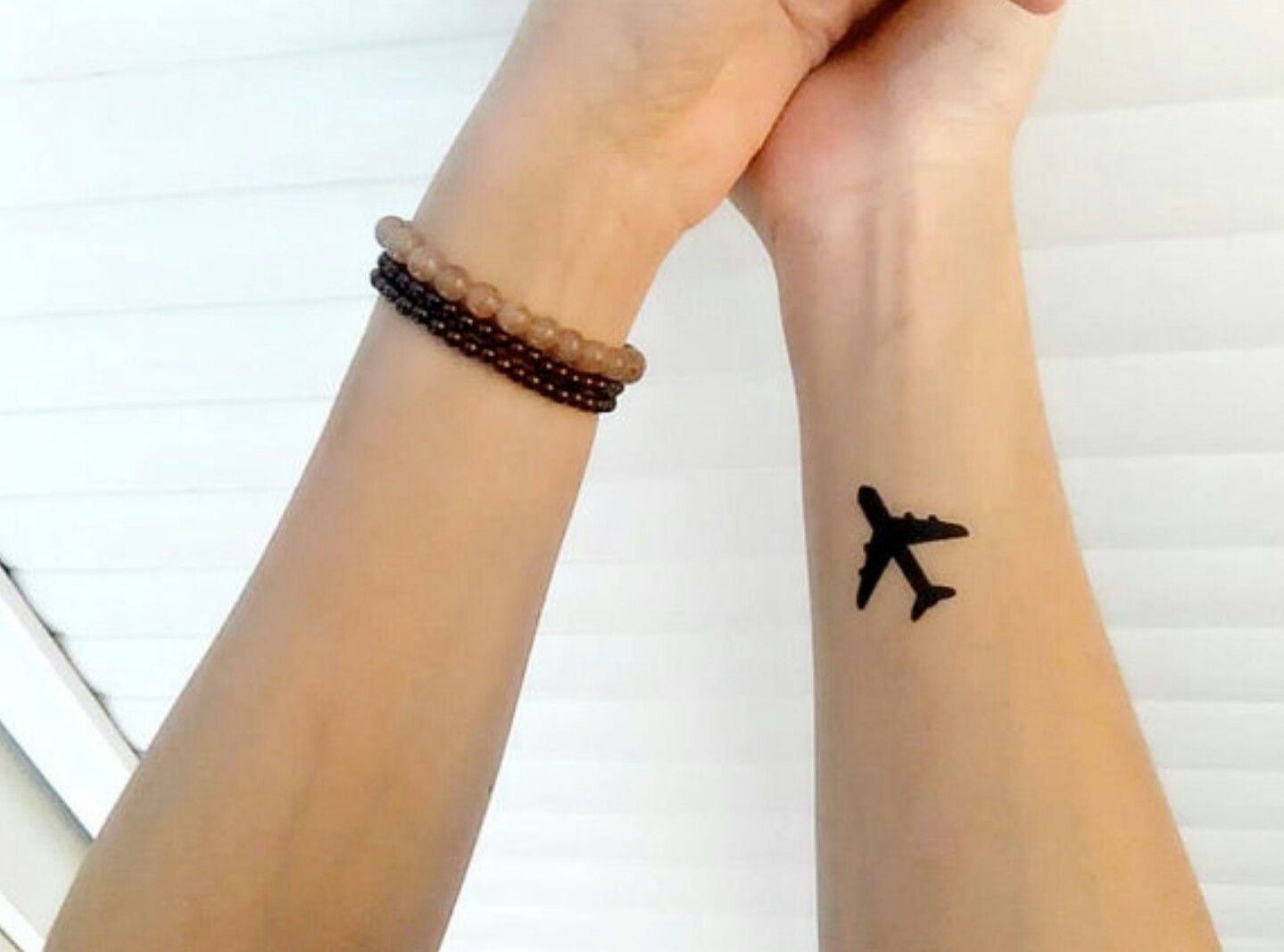 Татуировка самолет на запястье