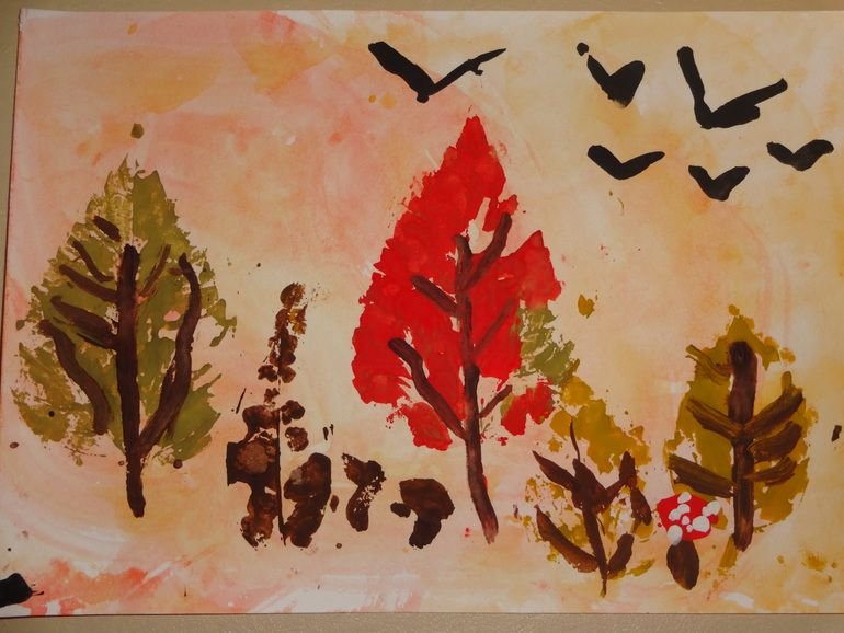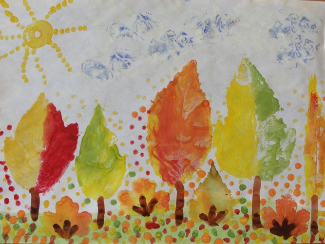 ![Нетрадиционные техники рисования осенние листья» (Отпечатки листьев)]()