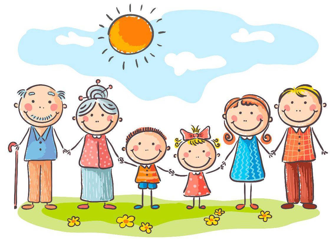 ![Дети и родители нарисовано]()
