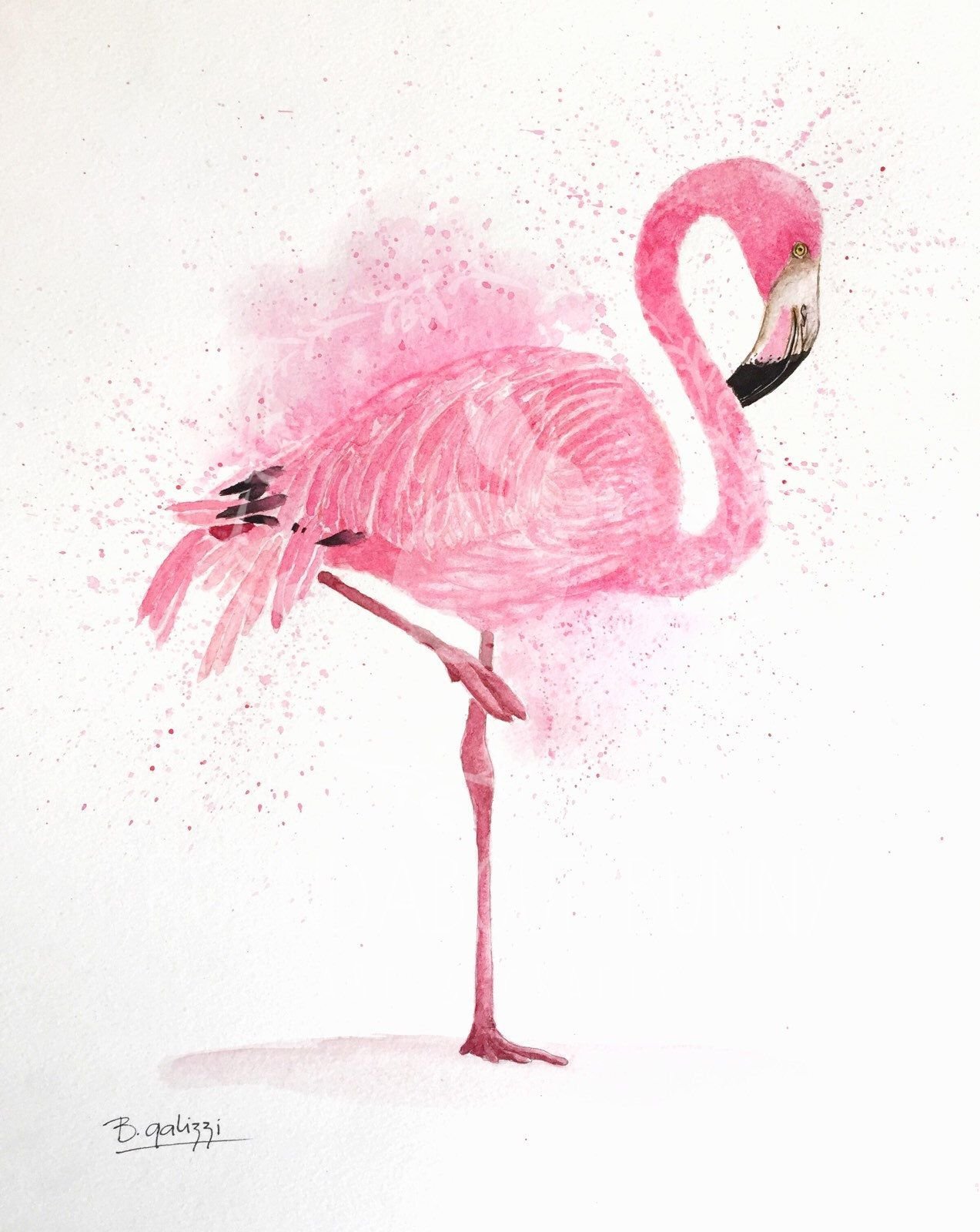Фламинго акварелью