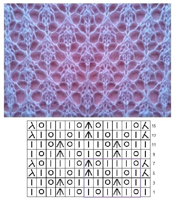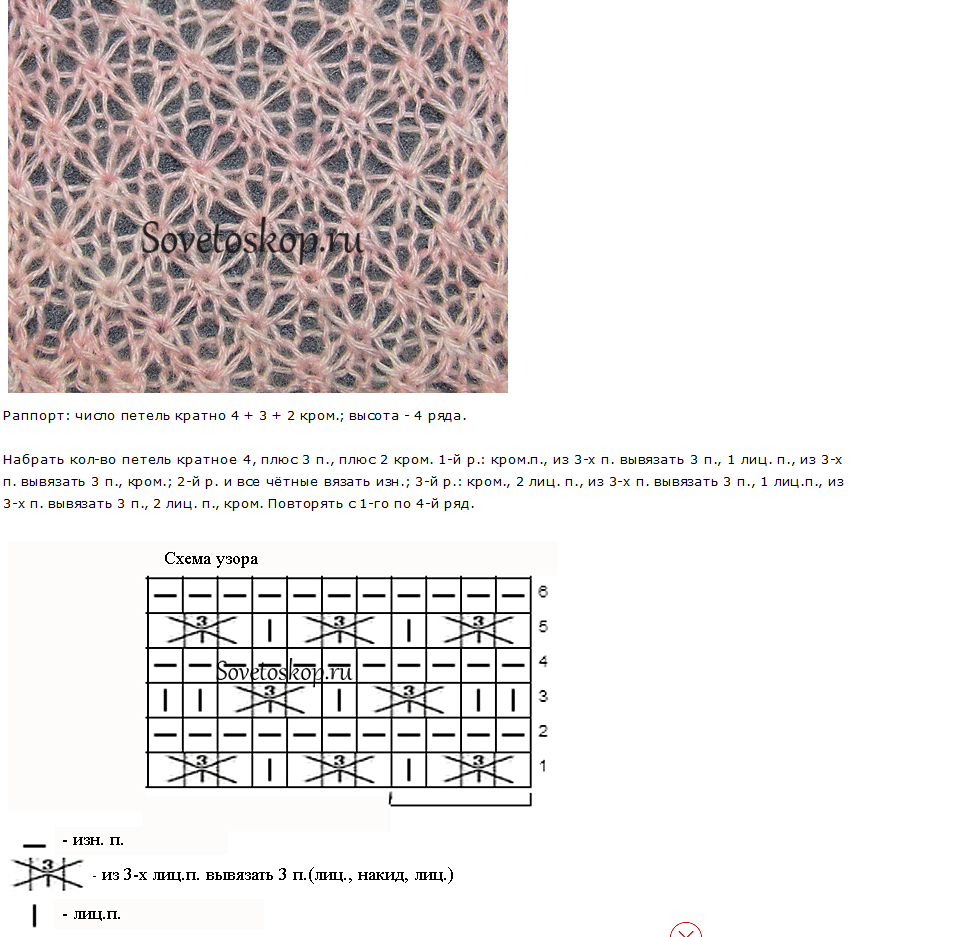 ![Схема ажурной вязки спицами для начинающих]()