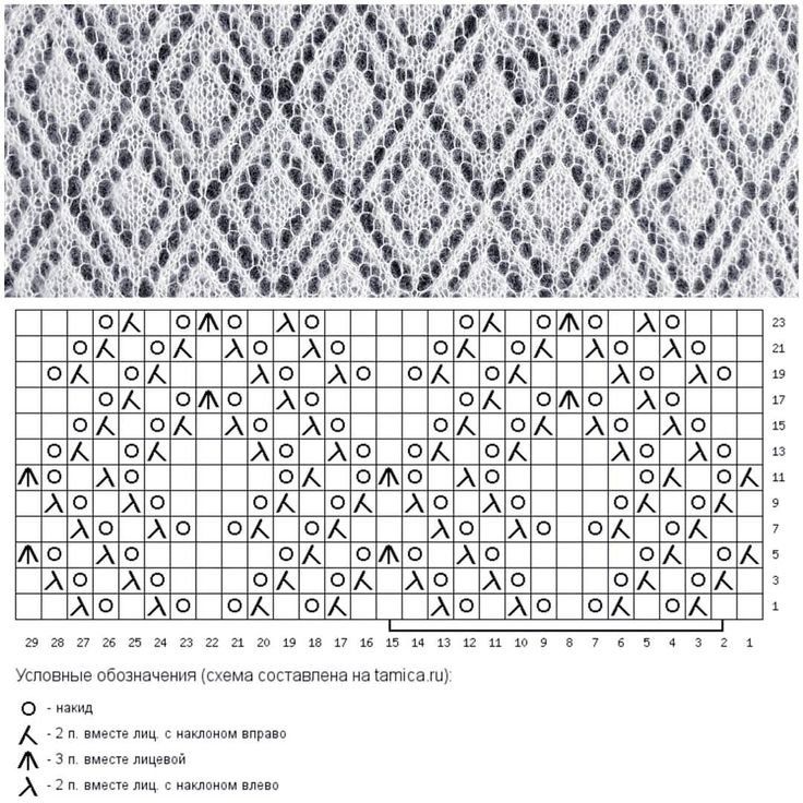 ![Вязание ажурных ромбов спицами схемы с описанием]()