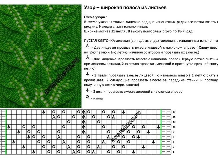 ![Вязание ажурные листья спицами схемы]()