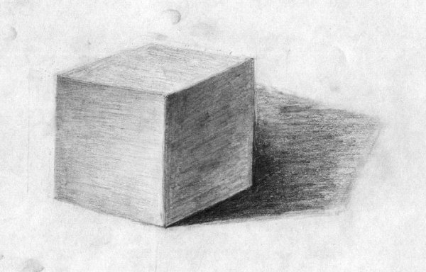 Куб карандашом с тенью