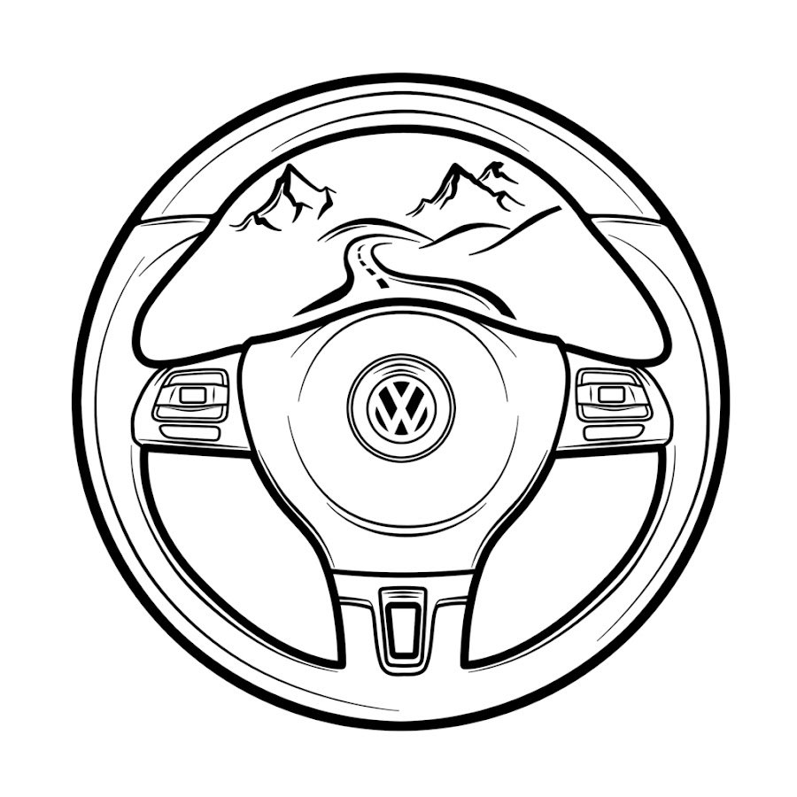 ![Нарисованный руль автомобиля Мерседес вид сбоку]()