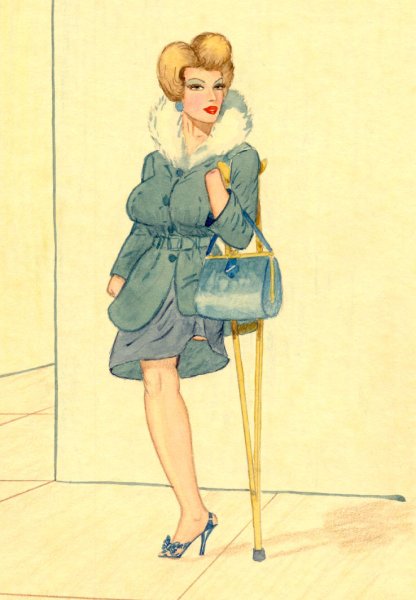 ![Девушка на костылях рисунок]()