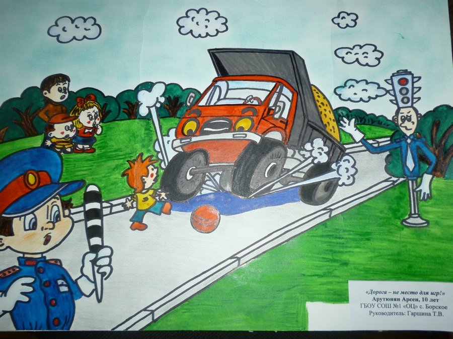 Рисунок на тему безопасность дорожного движения