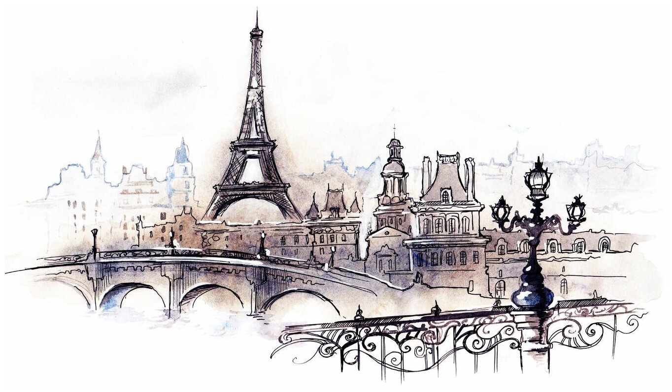 ![Фотообои Париж Эйфелева башня рисунок]()