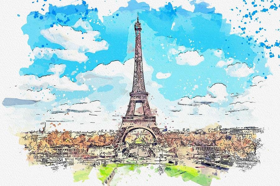 ![Париж Эйфелева башня акварель]()
