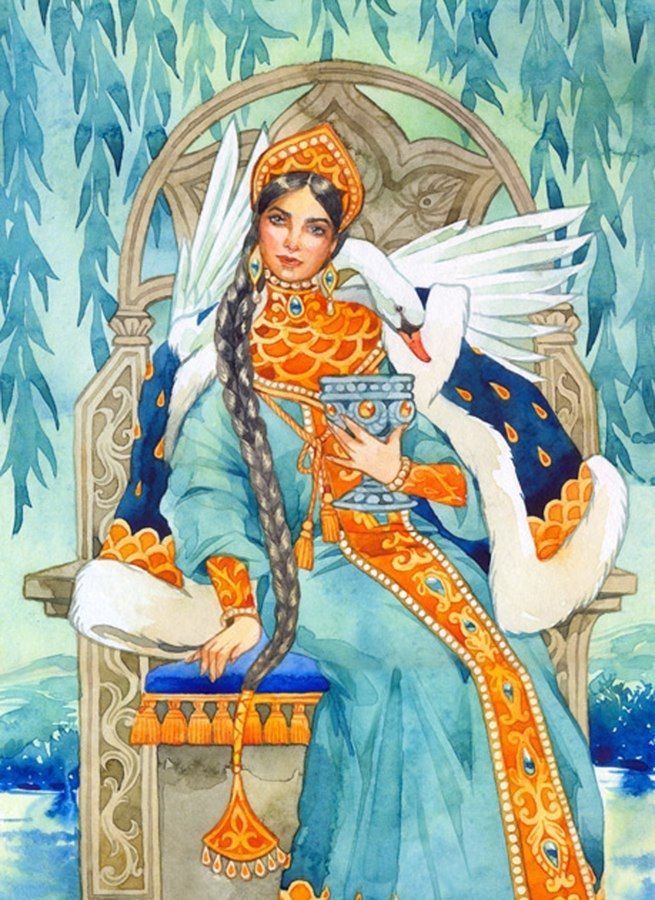 ![Рисунок царевны лебедь из сказки о царе Салтане]()