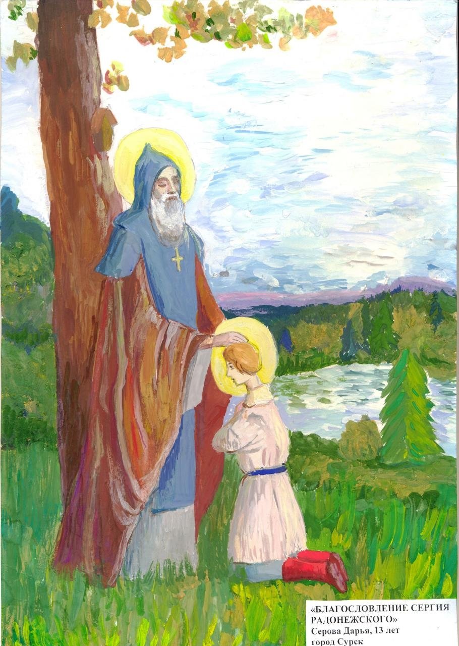 ![Преподобный Сергий Радонежский рисунки детей]()