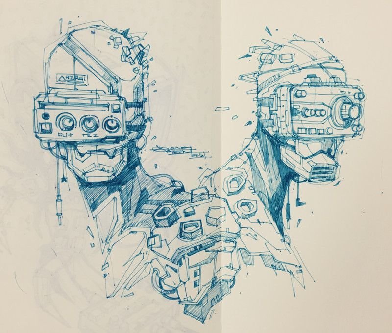 ![Скетчи в стиле киберпанк]()