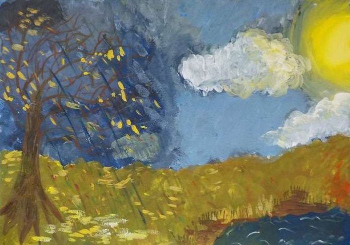 ![Осеннее небо рисунок для детей]()