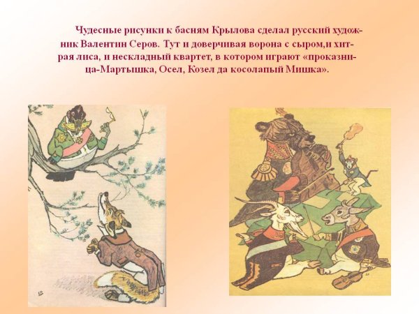 ![Иллюстрации к басне Крылова лиса и ворона]()