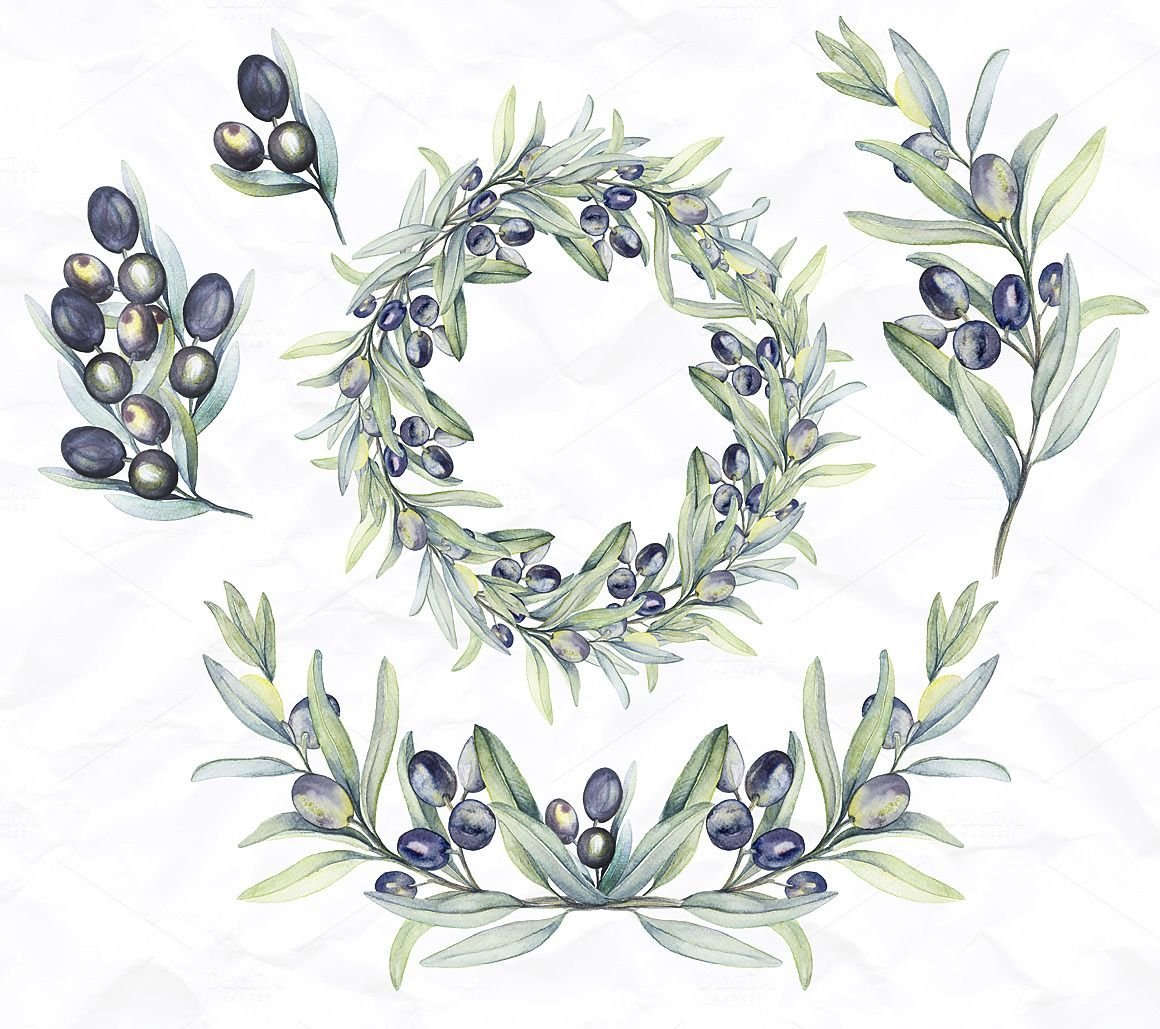 ![Ветка оливы акварель]()